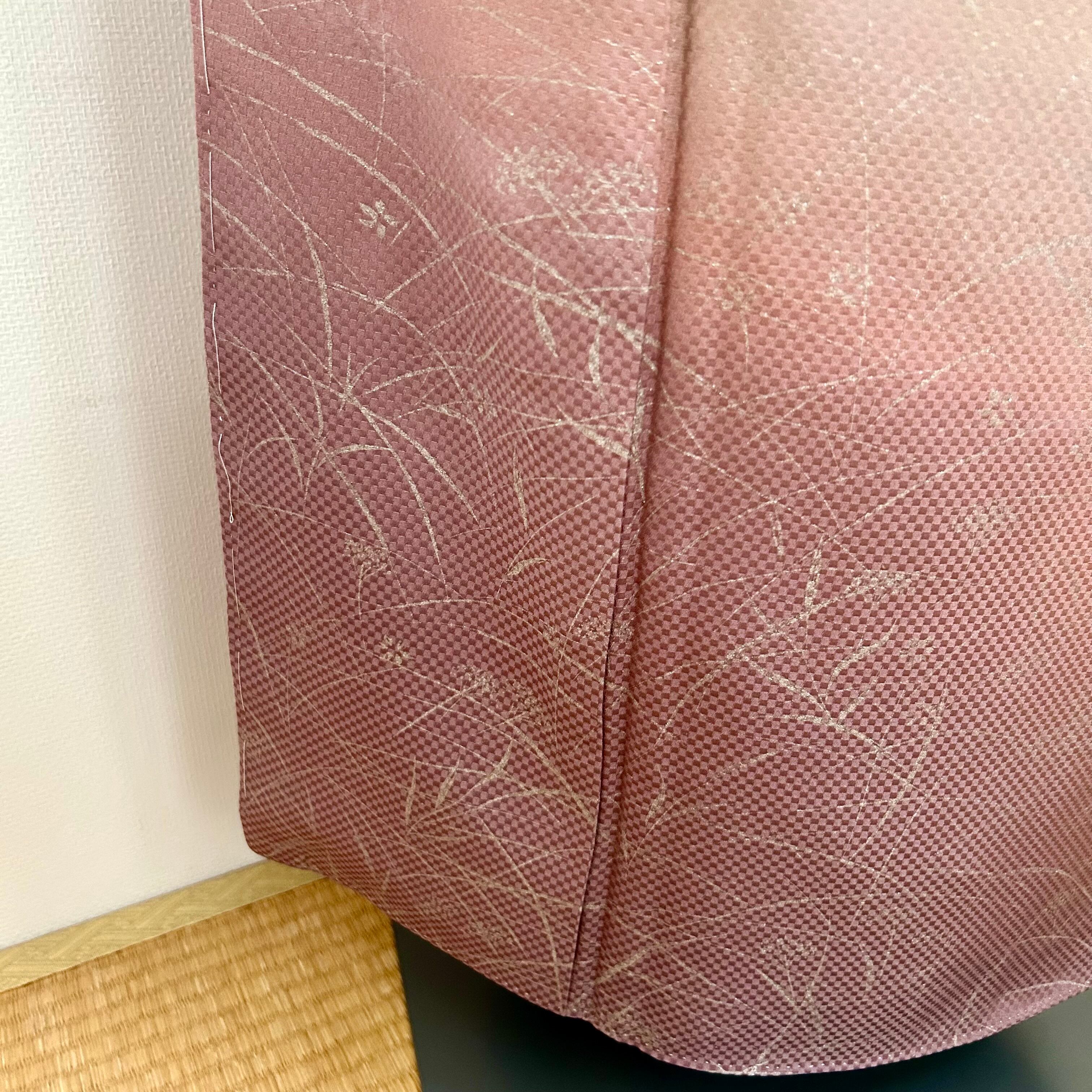 紫のグラデーションに細かい市松の地模様の訪問着は、