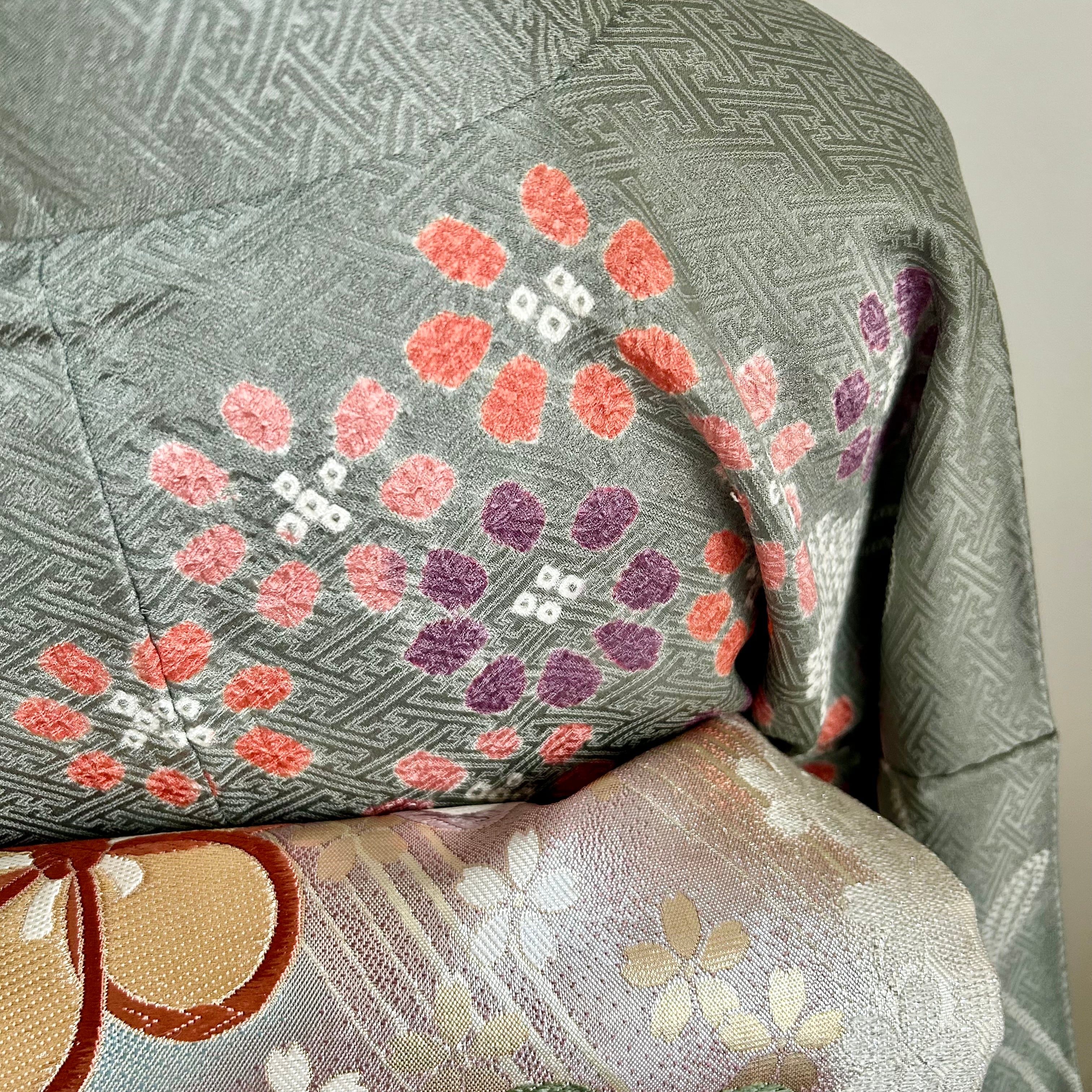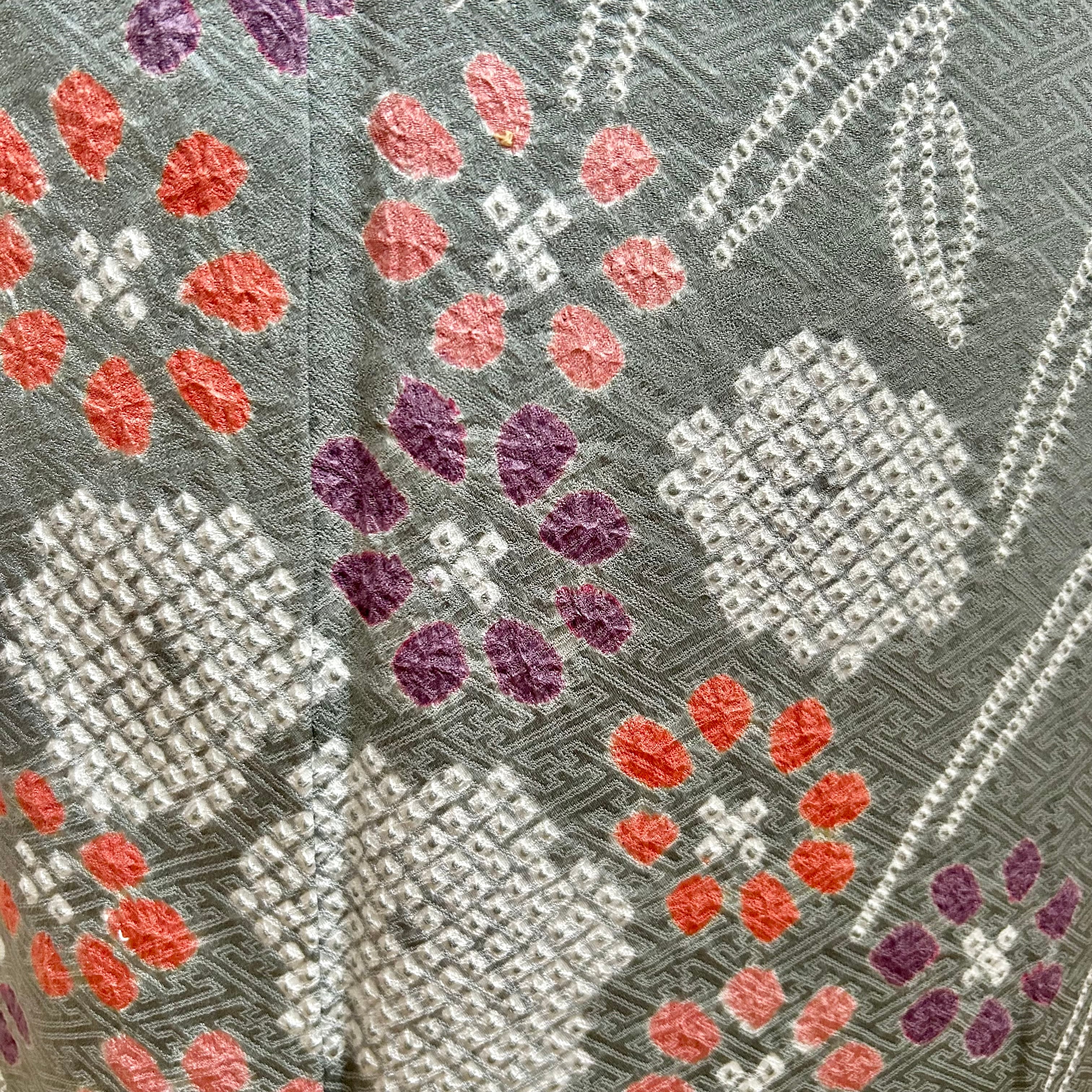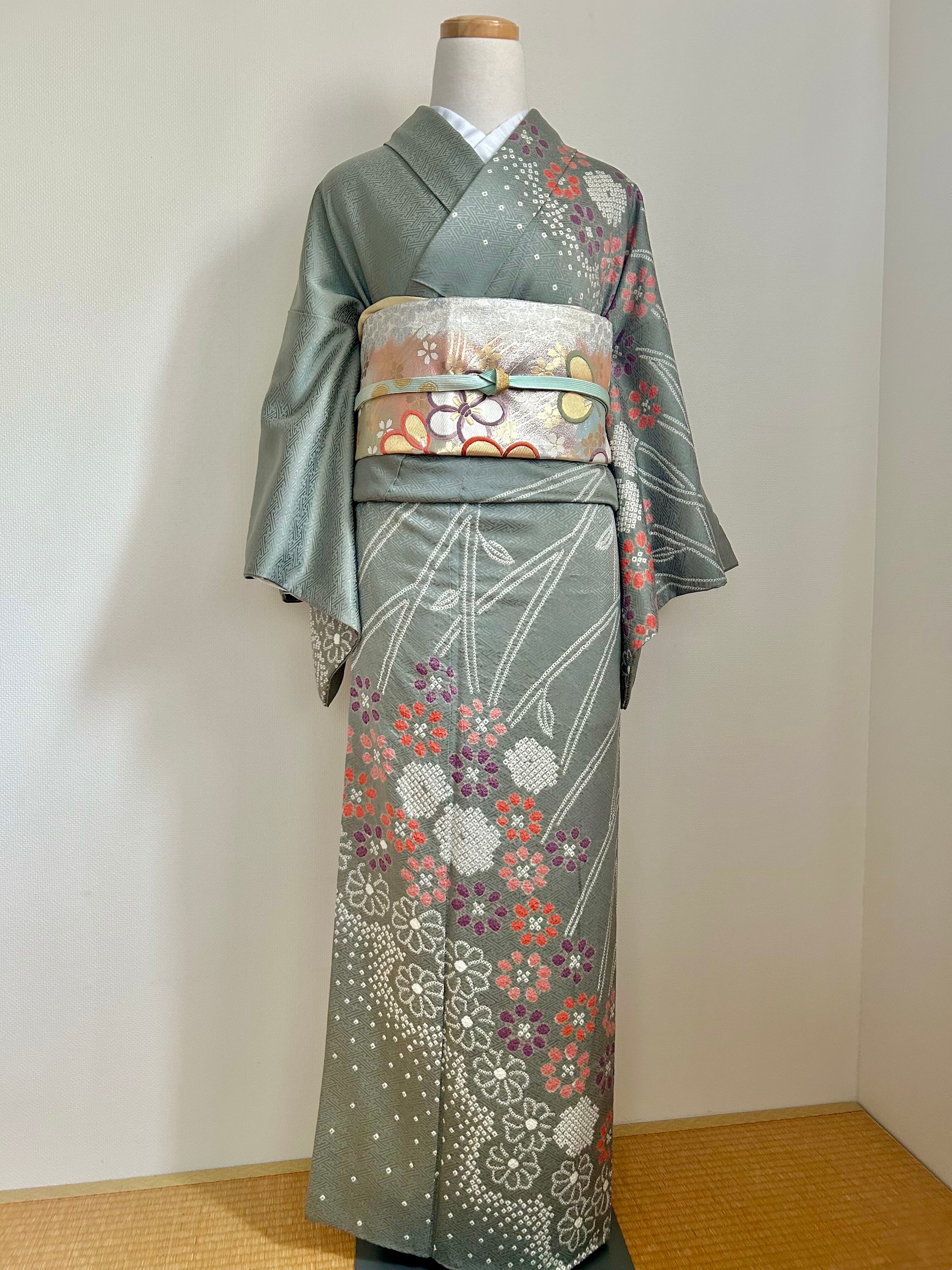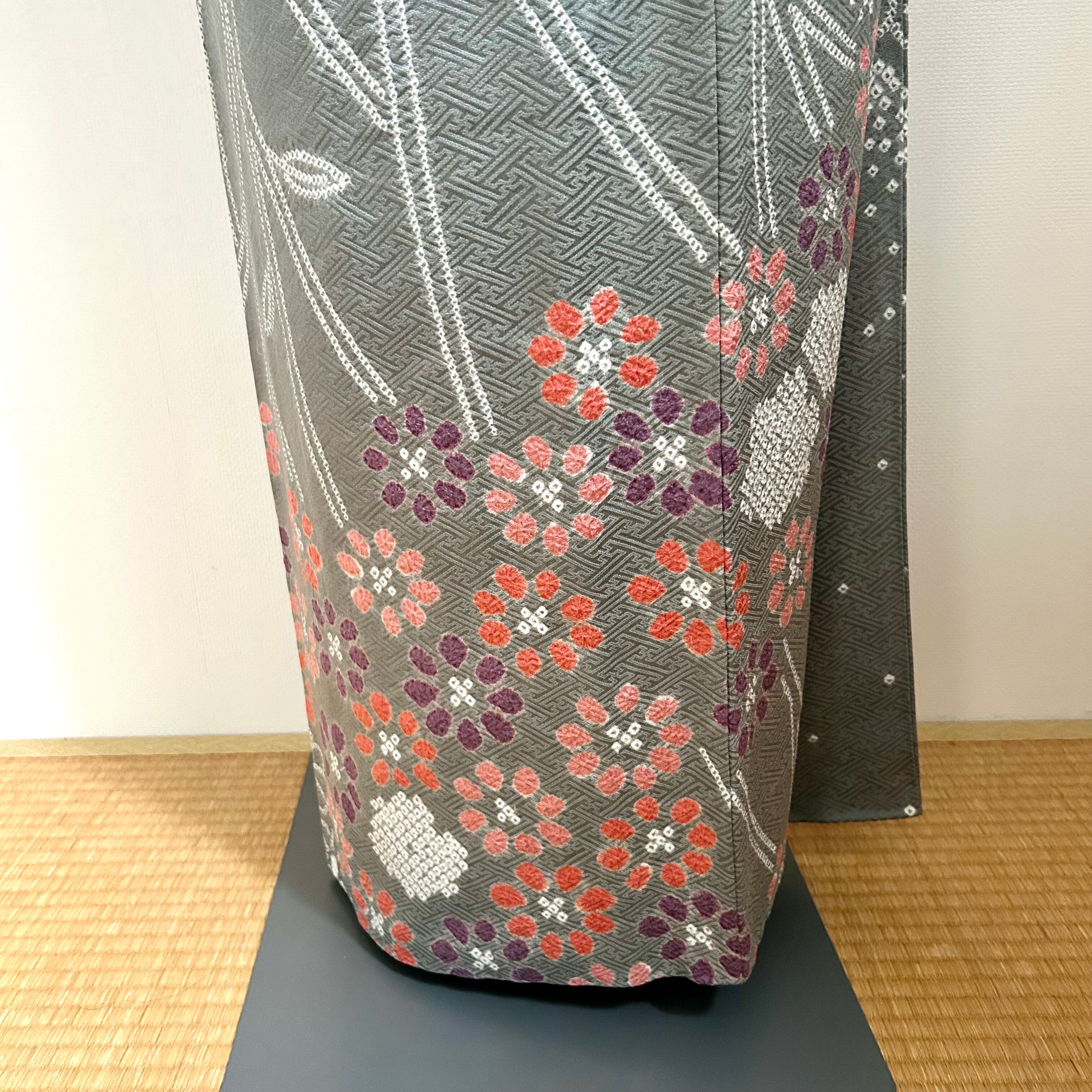 上品な光沢のグレー地に、辻が花の訪問着です。